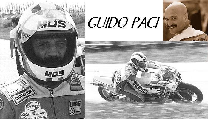 recinzione inconcepibili oggi. Nonostante i soccorsi furono celeri per Guido non ci fu niente da fare. La notizia suscitò immenso cordoglio, era un uomo generoso e la sua perdita segnò la vita non solo della sua famiglia ma anche di chi lo aveva conosciuto, era un uomo dal cuore buono e puro. La sua vita donata a questo sport pericoloso convinse gli organizzatori a prender provvedimenti sulla sicurezza dei piloti. Di lui disse Paolo Beltramo “Guido era il pilota di moto che ti faceva smettere di parlare di loro perché con lui finivi per parlare di tutto. Come spesso accadeva il sabato prima della gara siamo andati con la sua Volvo famigliare alla discoteca sopra il circuito di Imola l’ho visto quella sera abbiamo riso come sempre. L’ho rivisto il giorno dopo su di un tavolo d’acciaio senza vita. Guido ogni tanto ti penso mi ricordo mi manchi” Per onorare la memoria di Guido Paci è sorto un moto Club esclusivo che porta il suo nome il primo MC italiano all’interno di una base operativa dell’aeronautica militare presso il 53° stormo caccia a Cameri proprio dove Guido prestò servizio come pilota. |